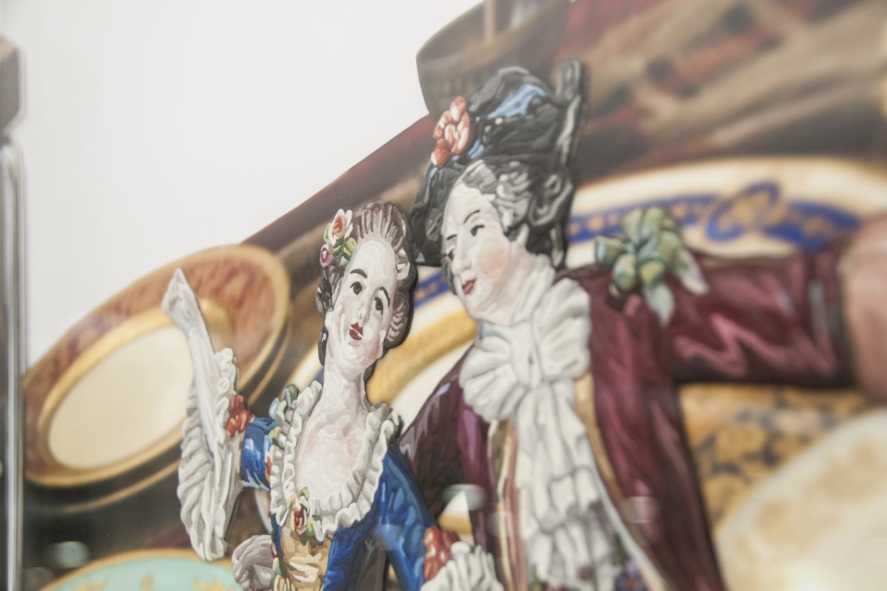 Su obra se construye por medio de la técnica del collage digital y de la fotografía, que posteriormente traduce a pequeñas unidades de color con las que construye superficies texturadas de plasticina.